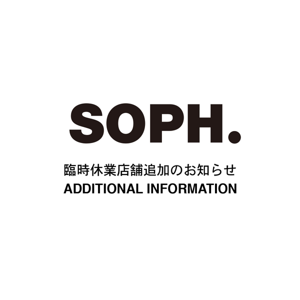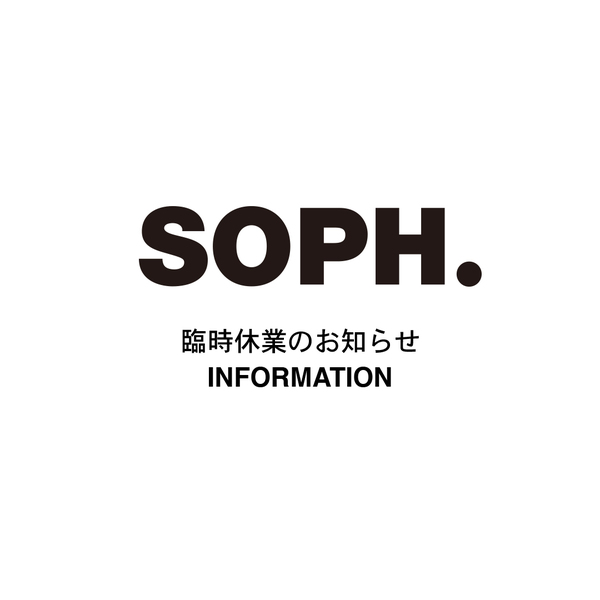 *SOPH.shop(一部shopを除く)、SOPH. ONLINE STOREでは30,000円(税込)以上お買い上げで送料が無料となります。是非ともご利用くださいませ。