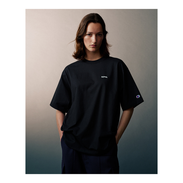 胸元のSOPH.ロゴ刺繍と、左袖のCロゴワッペンのみをあしらったミニマルで洗練された仕上がりです。