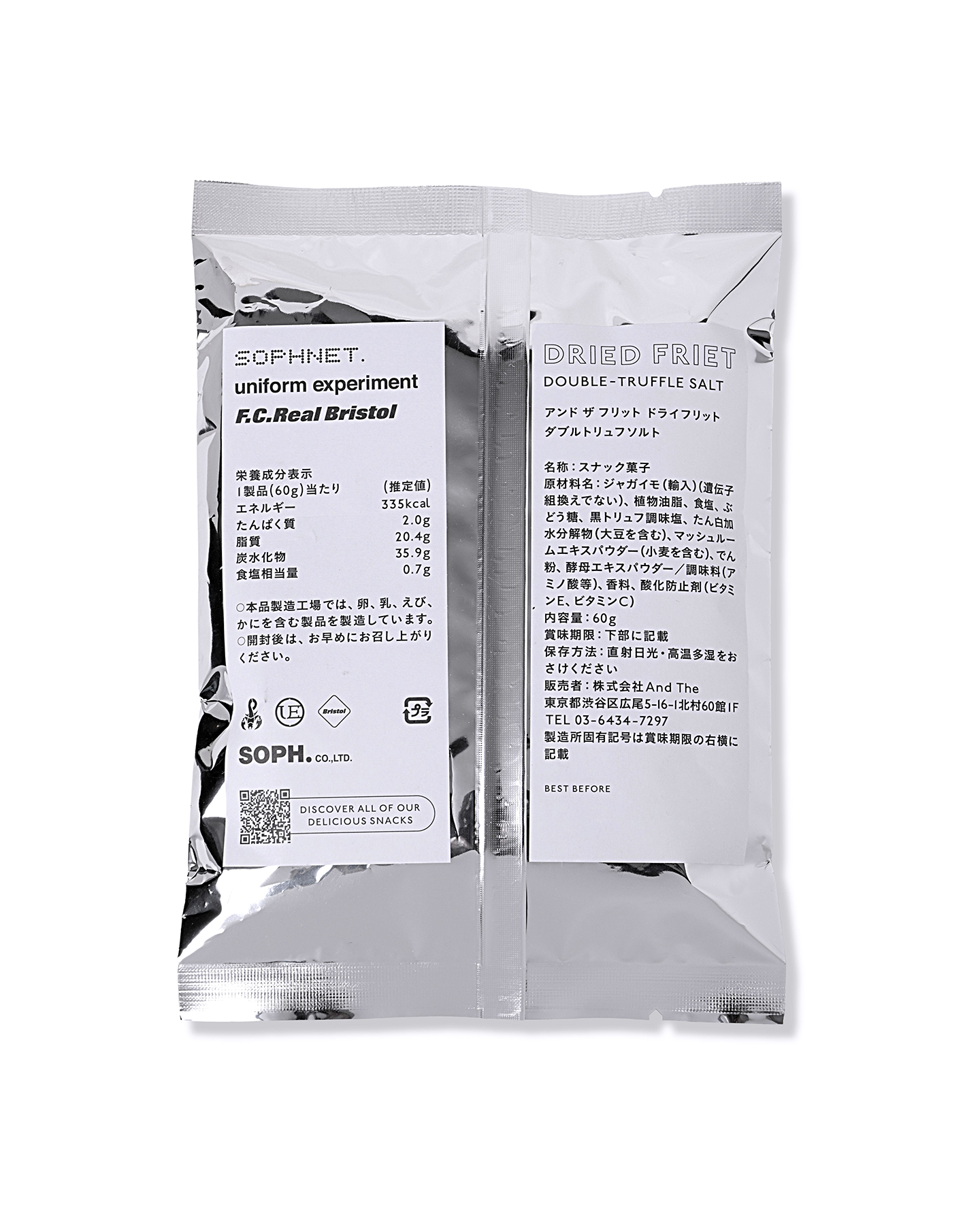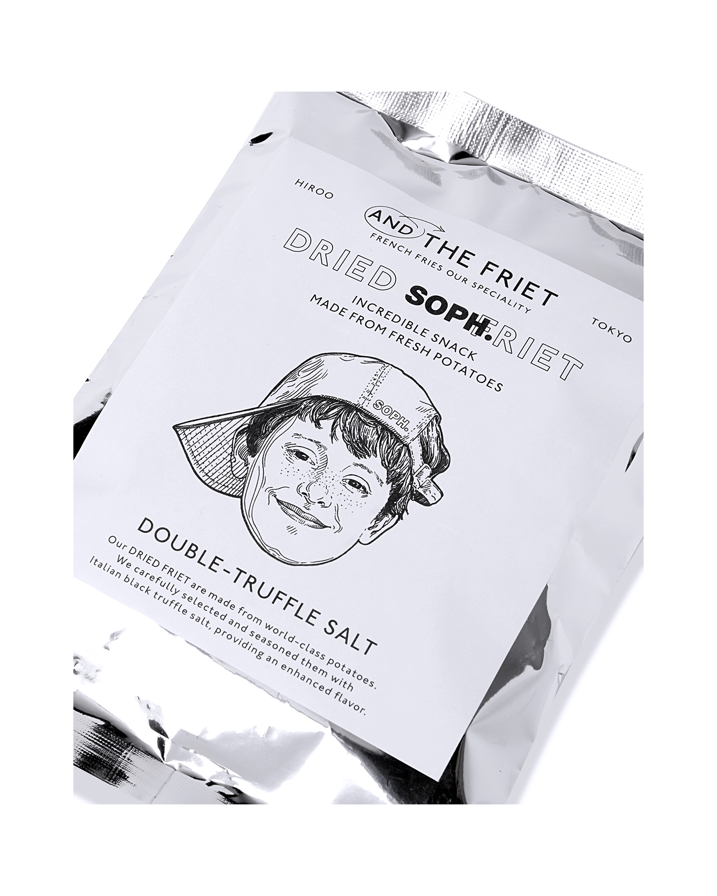 The seasonal novelty, a collaboration with the French fry specialty shop "AND THE FRIET," which has been dedicated to perfecting the finest French fries, is the "DRIED SOPH.RIET" -- an original creation in a SOPH. exclusive package designed by art director Naomi Hirabayashi.